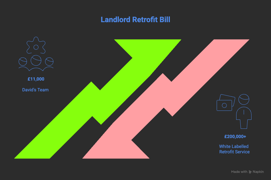 In several cases, one in particular when a landlords retrofit bill went from £200,000 plus for his 18 properties to just £11,000 - we needed to understand how David and his team were doing this.